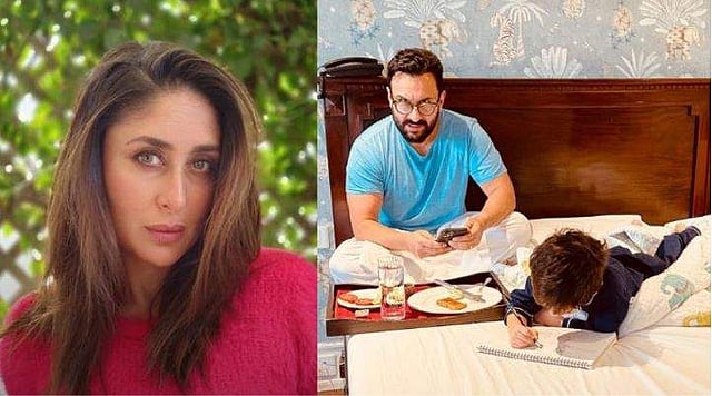 സെയ്ഫ് അലി ഖാനെയും തൈമൂറിനേയുമാണ് ചിത്രത്തില്‍ കാണുന്നത്. കിടക്കയില്‍ ഇരുന്നു ബ്രേക്ക് ഫാസ്റ്റ് കഴിക്കുകയാണ് സെയ്ഫ് അലി ഖാന്‍. മകന്‍ തൈമൂര്‍ ആണെങ്കില്‍ കിടന്നുകൊണ്ട് പടം വരയ്ക്കുന്ന തിരക്കിലാണ്. രസകരമായ അടിക്കുറിപ്പിനൊപ്പമാണ് കരീന ചിത്രം പങ്കുവച്ചിരിക്കുന്നത്. എന്റെ മോണിങ്... സെയ്ഫ്- ബേബൂ, നീ ഇന്‍സ്റ്റഗ്രാമില്‍ ഇടുന്നതിനായി ഫോട്ടോ എടുക്കുകയാണോ? ഞാന്‍- മ് ക്ലിക്ക് സെയ്ഫുവും ടിം ടിമ്മും എന്റെ ബോയ്‌സ്- കരീന കുറിച്ചു.