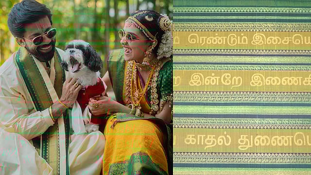 ഇപ്പോൾ കീർത്തിയുടെ വിവാഹവസ്ത്രം തുന്നിയെടുത്തതിനെക്കുറിച്ച് അനിത ഡോംഗ്രെ പങ്കുവച്ച വിഡിയോ ആണ് ശ്രദ്ധനേടുന്നത്. കീര്ത്തിയെഴുതിയ പ്രണയകവിത തുന്നിച്ചേർത്തുകൊണ്ടാണ് സാരി തയ്യാറാക്കിയത്. 405 മണിക്കൂറെടുത്താണ് കീർത്തിയുടെ വിവാഹസാരി നെയ്തെടുത്തത്. സില്ക് കുര്ത്തയും ദോത്തിയും കാഞ്ചാവരം സ്റ്റോളുമായിരുന്നു ആന്റണിയുടെ വേഷം. 150 മണിക്കൂര് എടുത്താണ് വരന്റെ വസ്ത്രം തയ്യാറാക്കിയത്.