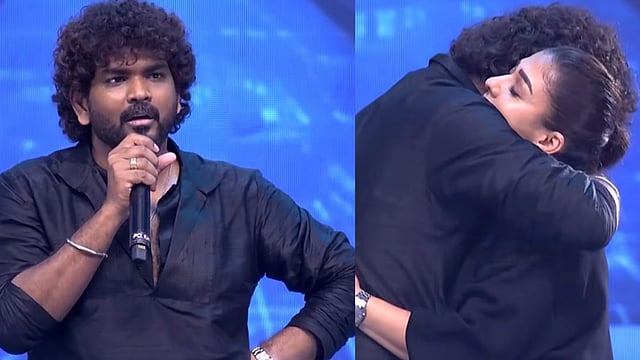 ഇങ്ങനെ പരിപാടി തുടങ്ങിക്കഴിഞ്ഞ് ആള് പതുക്കെ പിറകിലോടെ പുറത്തു പോകാറുണ്ട്.’’– വിഘ്നേഷ് പറഞ്ഞു. വിഘ്നേഷ് സംസാരം തുടരവേ അദ്ദേഹത്തെ ഞെട്ടിച്ചുകൊണ്ട് അണിയറപ്രവർത്തകർക്കൊപ്പം നയൻതാര വേദിയിലേക്ക് കടന്നുവരികയായിരുന്നു.