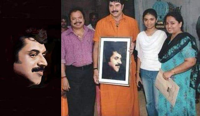 ഇത് രവി (ഡബ്ബിംഗ് ആർട്ടിസ്റ്റ് ശ്രീജയുടെ ഭർത്താവ്) വരച്ച് എനിക്ക് സമ്മാനിച്ച ചിത്രം ആണ്. അദ്ദേഹമിപ്പോൾ ജീവിച്ചിരിപ്പില്ല നമ്മൾ അറിയാതെ പോയ നല്ലൊരു ഗായകനും ചിത്രകാരനും ആയിരുന്നു രവി സ്നേഹസ്മരണകളോടെ.- മമ്മൂട്ടി കുറിച്ചു.