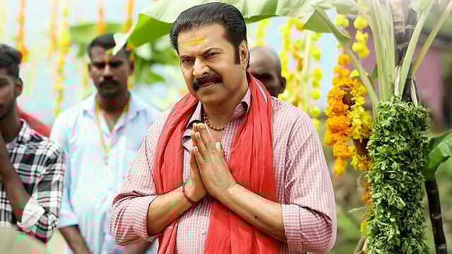 നെറ്റിയിൽ ചന്ദനക്കുറി തൊട്ട് ഒരു ക്ഷേത്രത്തിന് മുന്നിൽ തൊഴുകയ്യോടെ നിൽക്കുന്ന മമ്മൂട്ടിയെ ആണ് പോസ്റ്ററിൽ കാണാനാവുക. 'പ്രാർഥനകൾ ശാന്തമാണ്, ഉദ്ദേശ്യങ്ങൾ ശാന്തമല്ല'.- എന്നാണ് പോസ്റ്ററിന് ക്യാപ്ഷനായി കൊടുത്തിരിക്കുന്നത്. രസകരമായ കമന്റുകളോടെയാണ് ഈ പുതിയ പോസ്റ്റർ ആരാധകർ ഏറ്റെടുത്തിരിക്കുന്നത്.