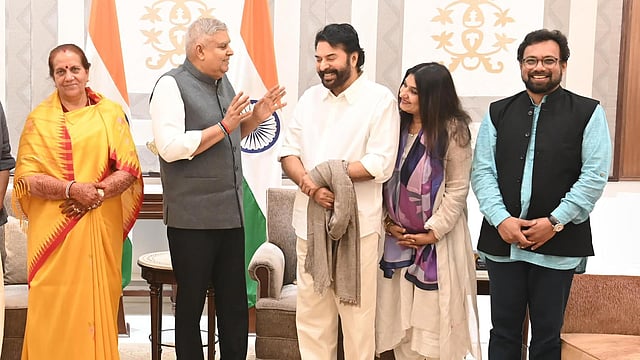 ന്യൂഡൽഹി: ഉപരാഷ്ട്രപതി ജഗ്ദീപ് ധൻകറിനെ സന്ദർശിച്ച് നടൻ മമ്മൂട്ടിയും ഭാര്യ സുൽഫത്തും. പുതിയ സിനിമയുടെ ചിത്രീകരണവുമായി ബന്ധപ്പെട്ട് ഡല്ഹിയില് എത്തിയപ്പോഴായിരുന്നു മമ്മൂട്ടി ഉപരാഷ്ട്രപതിയെ അദ്ദേഹത്തിന്റെ വസതിയില് എത്തി സന്ദർശിച്ചത്. ജോണ് ബ്രിട്ടാസ് എംപിക്കൊപ്പമാണ് ഇവര് ഉപരാഷ്ട്രപതിയുടെ വസതിയിലെത്തിയത്. ജോൺ ബ്രിട്ടാസ് ആണ് ഫെയ്സ്ബുക്ക് പേജിലൂടെ ചിത്രങ്ങൾ പങ്കുവച്ചിരിക്കുന്നത്.