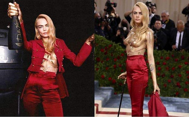 റെഡ് കാർപ്പറ്റിൽ വച്ച് ജാക്കറ്റ് അഴിച്ചു, സോറിയാസിസ് മറച്ചു വയ്ക്കാതെ കാര ഡെലിവീങ് മെറ്റ് ഗാലയിൽ; ചിത്രങ്ങൾ
