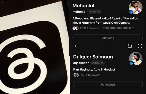 മലയാളത്തിൽ പ്രമുഖ താരങ്ങളിൽ ആദ്യം ത്രെഡ്സിസ് അക്കൗണ്ട് എടുത്തത് മോഹൻലാൽ ആണ്. 178K ആളുകളാണ് ആണ് അദ്ദേഹത്തെ ത്രെഡ്സിൽ ഫോളോ ചെയ്യുന്നത്. പിന്നാലെ ദുൽഖർ സൽമാൻ, മഞ്ജു വാര്യർ, നിവിൻ പോളി, ഇന്ദ്രജിത്ത്, പൂർണിമ ഇന്ദ്രജിത്ത് തുടങ്ങി നിരവധി ആളുകളും ത്രെഡ്സിൽ വരവ് അറിയിച്ചിട്ടുണ്ട്. ഇൻസ്റ്റഗ്രാമിൽ ഏറ്റവും അധികം ഫോളോവേഴ്സ് ഉള്ള ഖുൽക്കറിന് ത്രെഡ്സിൽ 264K ഫോളോവേഴ്സ് ആയി ഇതിനോടകം. എന്നാൽ പേജിൽ ഇതുവരെ പോസ്റ്റുകളൊന്നും പ്രത്യക്ഷപ്പെട്ടിട്ടില്ല.