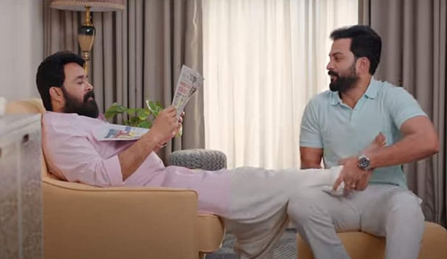 മോഹൻലാലും പൃഥ്വിരാജും ഒന്നിച്ചുള്ളതാണ് വിഡിയോ. നിങ്ങൾ കാത്തിരുന്ന അടിപൊളി അച്ഛൻ- മകൻ കോമ്പോ എന്ന കുറിപ്പിൽ ആമസോൺ പ്രൈം ആണ് വിഡിയോ പങ്കുവച്ചിരിക്കുന്നത്. പത്രം വായിച്ചിരിക്കുന്ന മോഹൻലാലിന്റെ അടുത്തേക്ക് പരസ്യ ഐഡിയയുമായി എത്തുകയാണ് പൃഥ്വിരാജ്. മകന്റെ ഐഡിയ മുഴുവൻ കേട്ട് മോഹൻലാൽ നൽകുന്ന മറുപടിയാണ് രസകരം.