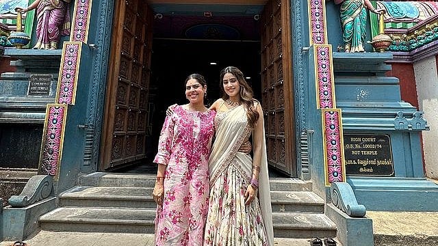 ചെന്നൈയിലെ മുപ്പത്തമ്മൻ ക്ഷേത്രത്തിലാണ് ജാൻവി എത്തിയത്. ആദ്യമായി മുപ്പത്തമ്മൻ ക്ഷേത്രം സന്ദർശിച്ചു. ചെന്നൈയിൽ തന്റെ അമ്മ ശ്രീദേവിയ്ക്ക് ഏറ്റവും ഇഷ്ടപ്പെട്ട സ്ഥലം ഇതാണെന്നും ജാൻവി കുറിച്ചിട്ടുണ്ട്. പഴയകാല നടി മഹേശ്വരിയേയും ജാൻവിയ്ക്കൊപ്പം ചിത്രത്തിൽ കാണാം. അടുത്തിടെയും ചെന്നൈയിലെത്തിയതിന്റെ ചിത്രങ്ങൾ ജാൻവി പങ്കുവച്ചിരുന്നു.