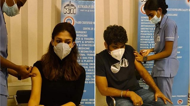 കോവിഡ് വാക്സിൻ സ്വീകരിച്ച് തെന്നിന്ത്യൻ താരസുന്ദരി നയൻതാരയും കാമുകനും സംവിധായകനുമായ വിഘ്നേഷ് ശിവനും. വാക്സിന്റെ ആദ്യ ഡോസാണ് ഇരുവരും സ്വീകരിച്ചത്. ഇൻസ്റ്റഗ്രാമിലൂടെ വിഘ്നേഷ് തന്നെയാണ് കുത്തിവയ്പ്പെടുക്കുന്നതിന്റെ ചിത്രം പങ്കുവെച്ചത്. ദയവായി എല്ലാവരും വാക്സീൻ എടുക്കണമെന്നും ജാഗ്രതയോടെ കൊവിഡിനെതിരെ പോരാടണമെന്നുമുള്ള കുറിപ്പിനൊപ്പമായിരുന്നു പോസ്റ്റ്.
