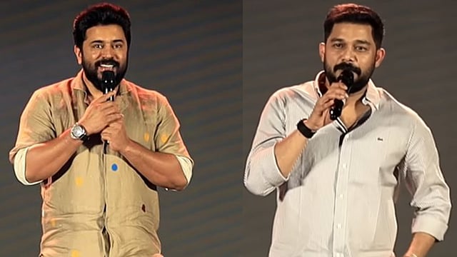 ഞങ്ങൾ ഒരുമിച്ച് സിനിമയിൽ വന്നവരാണ്. നായകനും വില്ലനുമായി ചെയ്യുന്ന സമയത്തൊക്കെ ഒത്തിരി ബുദ്ധിമുട്ടായിരുന്നു. എന്നാലും എങ്ങനെയോ ഞങ്ങൾ ഒപ്പിച്ചിട്ടുണ്ട് പടത്തിൽ. ഇത് എല്ലാവർക്കും ഇഷ്ടപ്പെടുമെന്ന് വിശ്വസിക്കുന്നു".- നിവിൻ പറഞ്ഞു. ശ്രീഗോകുലം മൂവീസിന്റെ ബാനറിൽ ഗോകുലം ഗോപാലൻ ആണ് ചിത്രം നിർമിക്കുന്നത്.