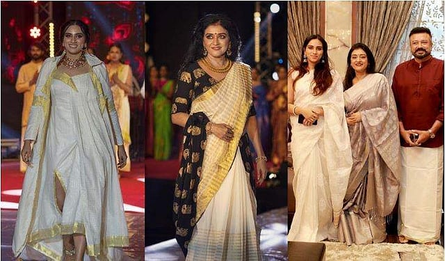 ഹാൻഡ്‌ലൂം കസവ് സാരിയിൽ അതിസുന്ദരിയായാണ് പാർവതി റാംപിൽ എത്തിയത്
