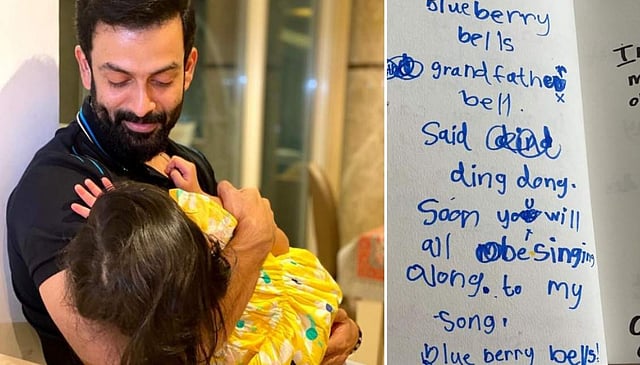 തൊട്ടതെല്ലാം പൊന്നാക്കിയ നടനാണ് പൃഥ്വിരാജ്. നടൻ എന്ന നിലയിൽ മാത്രമല്ല മികച്ച സംവിധായകനും നിർമാതാവ്, ഗായകൻ എന്നിങ്ങനെ എല്ലാ മേഖലയിലും തന്റേതായ സ്ഥാനം നേടിയെടുക്കാൻ താരത്തിനായി. പൃഥ്വിരാജിന്റെ മകൾ അല്ലിയും അച്ഛന്റെ വഴിയെയാണ്. അല്ലി എഴുതിയ പാട്ടിന്റെ വരികൾ പങ്കുവെച്ചുകൊണ്ട് സുപ്രിയയാണ് വളർന്നുവരുന്ന ഗാനരചയിതാവിനെ പരിചയപ്പെടുത്തിയത്.