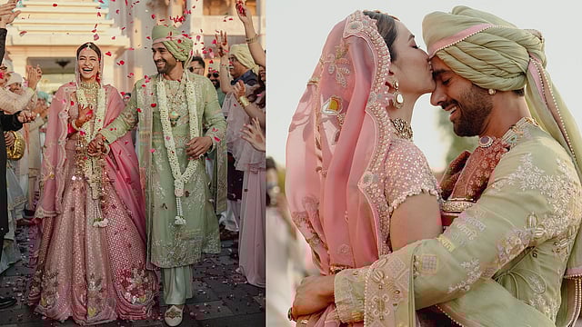 പിങ്ക് ലഹങ്കയായിരുന്നു കൃതിയുടെ വേഷം. മിന്റ് ഗ്രീൻ ഷർവാണിയാണ് പുൽകിത് അണിഞ്ഞിരുന്നത്. ദമ്പതികൾക്ക് ആശംസകൾ അറിയിച്ചുകൊണ്ട് നിരവധി പേരാണ് കമന്റ് ചെയ്യുന്നത്.
