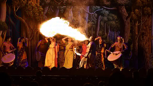 ''സാങ്കേതികതയും കലാകാരന്മാരും സ്റ്റേജ് ക്രൂവുമെല്ലാം ചേര്ന്നാണ് ഞങ്ങളുടെ നാടകത്തെ വ്യത്യസ്തമാക്കുന്നത്. ഇന്ത്യയില് മറ്റൊരു നാടകവും കലാനിലയത്തെ പോലെ സാങ്കേതിക വിദ്യയെ ഉപയോഗിച്ചിട്ടുണ്ടാകില്ല. ഒരു സീനില് നിന്നും മറ്റൊരു സീനിലേക്ക് പോകാന് ഒരു സെക്കന്റ് പോലും വേണ്ടി വരുന്നില്ല. വിമാനത്താവളത്തില് നിന്നും കൊടും വനത്തിലേക്കും ബുദ്ധാശ്രമത്തിലേക്കുമെല്ലാം കണ്ണ് ചിമ്മുന്ന വേഗത്തിലാണ് പോകുന്നത്. ഒറിജിനല് സ്റ്റേജ് ഡിസൈന് ചെയ്തത് എന്റെ അച്ഛനും തൃപ്പൂണിത്തറ കുമാരന് നായരും ചേര്ന്നാണ്'' അനന്തപത്മനാഭന് പറയുന്നു.