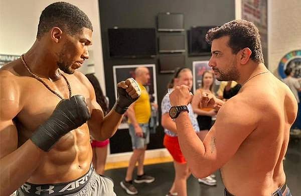 ലോക ഹെവി വെയ്റ്റ് ചാമ്പ്യനായ ആന്തണി ജോഷ്വായോട് എതിരിടുന്ന രമേഷ് പിഷാരടിയെയാണ് ചിത്രത്തിൽ കാണുന്നത്. ഒറ്റനോട്ടത്തിൽ ആരാധകരെ ഞെട്ടിക്കുന്നതാണ് ചിത്രം. ഷർട്ടില്ലാതെ ബോക്സിങ്ങിനായി തയാറി നിൽക്കുന്ന പിഷാരടിയെയാണ് ചിത്രത്തിൽ കാണുന്നത്. ലണ്ടനിലെ മാഡം തുസാഡ്സ് വാക്സ് മ്യൂസിയത്തിലെ ജോഷ്വായുടെ മെഴുക് പ്രതിമയോടാണ് താരത്തിന്റെ മത്സരം. വേണ്ടാ, വേണ്ടാന്നു വിചാരിച്ചതാ - എന്ന കാപ്ഷനൊപ്പമുള്ള ചിത്രങ്ങൾ ആരാധകരുടെ ഹൃദയം കവരുകയാണ്.