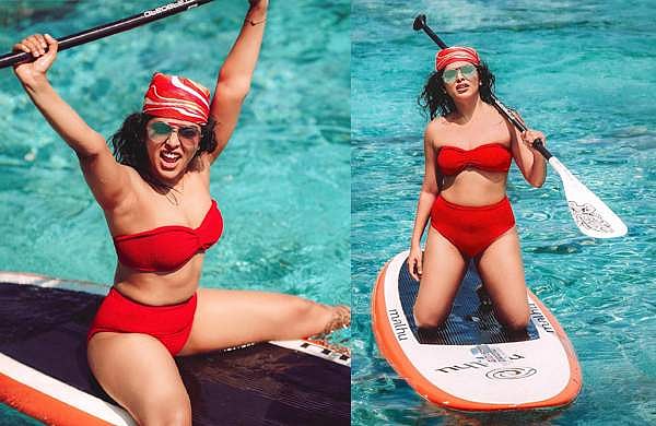 കടലിന്റെ നീലിമയിൽ അതീവ ഗ്ലാമറസായാണ് റിമയെ കാണുന്നത്. ചുവന്ന ബിക്കിനിയിൽ കയാക്കിങ് നടത്തുന്ന ചിത്രങ്ങളാണ് താരം സോഷ്യൽ മീഡിയയിൽ പങ്കുവച്ചത്. കൂളിങ് ഗ്ലാസും ചുവപ്പിലും വെളുപ്പിലുമുള്ള പ്രിന്റോട് കൂടിയ ഹെയർ ബാൻഡും അണിഞ്ഞ് സ്റ്റൈലിഷായാണ് റിമയെ കാണുന്നത്.