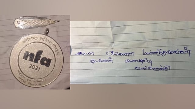 ദേശീയ അവാര്ഡുകള് പോളിത്തീന് കവറിലാക്കി വീടിന്റെ ഗേറ്റിനുമുകളില് വെയ്ക്കുകയായിരുന്നു. ഒരു കത്തും ഇതിനൊപ്പം ഉണ്ടായിരുന്നു. തങ്ങളോട് ക്ഷമിക്കണമെന്നും നിങ്ങള് അധ്വാനിച്ച് സമ്പാദിച്ചത് നിങ്ങള്ക്കുള്ളതാണ് എന്നുമാണ് കത്തിന്റെ ഉള്ളടക്കം. ഉസലംപട്ടി ടൗണ് പൊലീസ് സംഭവത്തില് കേസെടുത്ത് അന്വേഷണം ആരംഭിക്കുകയും മെഡല് നഷ്ടപ്പെട്ട വാര്ത്ത സോഷ്യല് മീഡിയയില് പ്രചരിച്ചതോടെയുമാണ് മോഷ്ടാക്കള് മെഡലുകള് തിരിച്ചെത്തിച്ചത്.