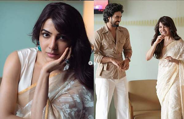 ക്രീം നിറത്തിലുള്ള ബാനറസി സാരിയായിരുന്നു താരത്തിന്റെ വേഷം. പ്യൂർ കോട്ട സിൽക്കും ബറാസി കട്ട്വർക്കും സറി ബോർഡറുമുള്ള സാരി ധരിച്ചാണ് സാമന്ത എത്തിയത്. 13,800 രൂപയാണ് സാരിയുടെ വില. മിനിമൽ സോഫ് ഗ്ലാം മേക്കപ്പ്, ബേസിക് മസ്കാര ആൻഡ് ഐലൈനർ ചെയ്ത് വളരെ മിനിമൽ മേക്കപ്പിലായിരുന്നു താരം വന്നത്. സ്റ്റേറ്റ്മെന്റ് കമ്മലും മോതിരവുമായിരുന്നു ആക്സസറി.