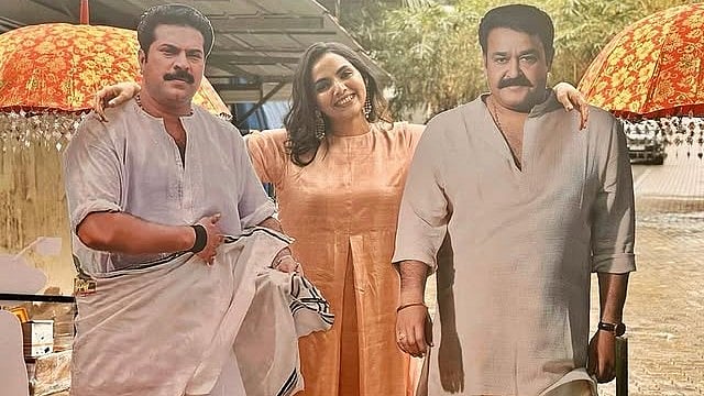 മോഹൻലാലിന്റെയും മമ്മൂട്ടിയുടെയും ഫ്ലക്സുകൾക്ക് നടുവിൽ, ആ രൂപത്തിന്റെ തോളിൽ കയ്യിട്ടു നിൽക്കുന്ന ചിത്രമാണ് സംവൃത പങ്കുവച്ചിരിയ്ക്കുന്നത്. ഒരു ഓണം വൈബ് സംവൃത പങ്കുവച്ച ഫോട്ടോയിൽ കാണാം. മമ്മൂട്ടി വല്യേട്ടൻ ലുക്കിൽ മുണ്ട് മടക്കി കുത്തിയും, മോഹൻലാലിന്റെ ഒരു കോമൺ കേരളീയ ലുക്കാണ്.