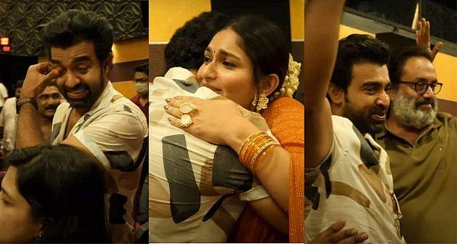 സിനിമയുടെ ആദ്യ ഷോ കുടുംബത്തിനൊപ്പം തിയറ്ററിൽ എത്തിയാണ് താരം കണ്ടത്. നിറകണ്ണുകളോടെയാണ് താരം ചിത്രം കണ്ട് എഴുന്നേറ്റത്. ഭാര്യ സിജുവിന് സ്നേഹ ചുംബനം നൽകി. തുടർന്ന് തിയറ്ററിലുള്ള ചിത്രത്തിലെ എല്ലാ അണിയറ പ്രവർത്തകരുടേയും അഭിനേതാക്കളുടേയും അടുത്തെത്തി സ്നേഹം അറിയിച്ചു. ഇടയ്ക്ക് സിജു കണ്ണു തുടയ്ക്കുന്നതും വിഡിയോയിൽ കാണാം. വൻ കയ്യടിയാണ് ടീമിന്റെ അണിയറ പ്രവർത്തകർക്ക് പ്രേക്ഷകർ നൽകിയത്.