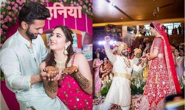 ചുവന്ന ലെഹങ്കയാണ് ദിഷ വിവാഹത്തിന് ധരിച്ചിരുന്നത്. ക്രീം നിറത്തിലെ ഷര്വാണിയായിരുന്നു രാഹുലിന്റെ വേഷം.