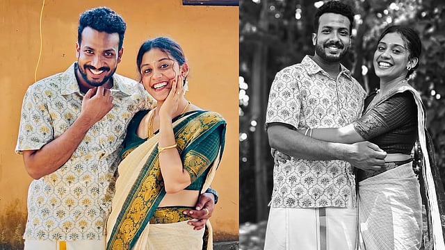 ഫ്ലോറൽ പ്രിന്റുള്ള ഷര്ട്ടും മുണ്ടുമാണ് അഭിഷേകിന്റെ വേഷം. ഒട്ടേറപ്പേര് നവദമ്പതികള്ക്ക് ആശംസകളുമായെത്തി. സിത്താര കൃഷ്ണകുമാർ, ജ്യോത്സന, ദീപ്ദി വിധുപ്രതാപ്, ഹരിശങ്കർ തുടങ്ങിയവരും ഇരുവർക്കും ആശംസകൾ നേർന്നിട്ടുണ്ട്. ‘സഖാവ്’ എന്ന കവിത ആലപിച്ച് ശ്രദ്ധ നേടിയ ഗായികയാണ് ആര്യ.