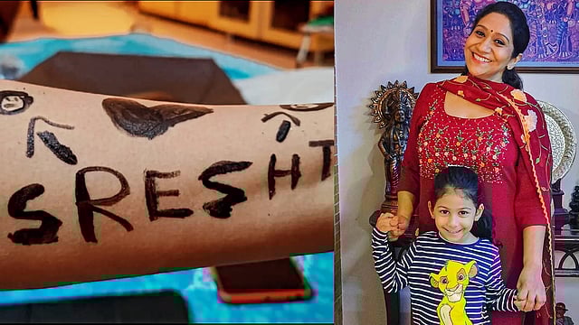 ഐ ലൈനർ ഉപയോഗിച്ച് ശ്രേഷ്ഠ സമ്മാനിച്ച ടാറ്റുവിന്റെ ചിത്രമാണ് ഗായിക പോസ്റ്റ് ചെയ്തത്. കൈത്തണ്ടയിൽ ശ്രേഷ്ഠ എന്നാണ് എഴുതിയിരിക്കുന്നത്. കൂടാതെ ജനലിൽ വലിഞ്ഞു തയറുന്ന ശ്രേഷ്ഠയുടെ ചിത്രവും പോസ്റ്റ് ചെയ്തിട്ടുണ്ട്. വെക്കേഷൻ വൈബ് എന്ന അടിക്കുറിപ്പിലാണ് ചിത്രം പോസ്റ്റ് ചെയ്തിരിക്കുന്നത്.