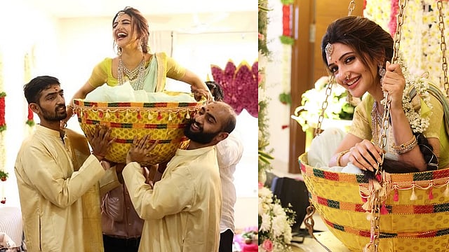 ഒരു ചിത്രത്തില് ഒരു കൊട്ടയില് രണ്ട് പേര് ശ്രീലീലയെ എടുത്തു കൊണ്ടു വരുന്നത് കാണാം. ഇതേ കൊട്ടയില് തുലാഭാരം നടത്തുന്നതും, കുടുംബത്തിനൊപ്പമുള്ള ചിത്രങ്ങളും കാണാം. "പണ്ടൊക്കെ ഞങ്ങൾ വീട്ടിൽ പിറന്നാൾ ആഘോഷിച്ചിരുന്നത് ഇങ്ങനെയാണ്. പ്ലാനിങ് ക്രെഡിറ്റ്സ് – അമ്മ (പ്രീ ബര്ത്ത്ഡേ)” എന്ന ക്യാപ്ഷനോടെയാണ് ശ്രീലീല ചിത്രങ്ങള് പങ്കുവച്ചിരിക്കുന്നത്.