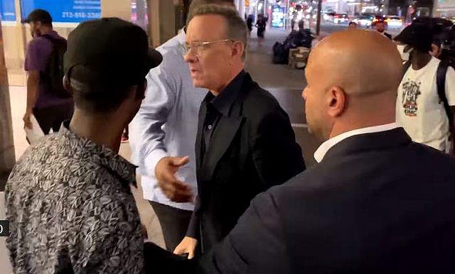 പുറത്ത് കാത്തുനിന്നിരുന്ന എസ് യു വിയിലോക്ക് നടന്നടുക്കുകയായിരുന്നു ടോം ഹാങ്ക്സും ഭാര്യ റീത്ത വിൽസണും. ടോം ഹാങ്ക്സിനോട് സംസാരിച്ചുകൊണ്ട് നടക്കുകയായിരുന്ന ആരാധകൻ റീത്തയെ ശ്രദ്ധിക്കാതെ തട്ടുകയും അവർ നിലത്ത് വീഴാൻ തുടങ്ങുകയും ചെയ്തു. ഇതോടെയാണ് താരത്തിന് ദേഷ്യം കയറിയത്. "ഇതെന്റെ ഭാര്യയാണ്, എന്റെ ഭാര്യയെ തള്ളിയിടുന്നോ" എന്നു ചോദിച്ചുകൊണ്ടാണ് ഹാങ്ക്സ് ആരാധകരോട് തട്ടിക്കയറി. തിക്കിനും തിരക്കിനുമിടയിലൂടെ ബോഡി​ഗാർഡിന്റെ സഹായത്തോടെയാണ് ഇരുവരും കാറിനടുത്തേക്ക് നീങ്ങിയത്.