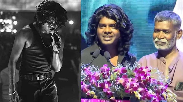 ''ഇന്ത്യന് സിനിമയുടെ ചരിത്രത്തില് ആദ്യമായിട്ടാകും ഒരു ഇന്ഡിപെന്ഡന്റ് കലാകാരന് ചലച്ചിത്ര പുരസ്കാരം ലഭിക്കുന്നത്. ഈ അവാര്ഡ് ലഭിച്ചതില് സന്തോഷം. എനിക്ക് അവാര്ഡ് കിട്ടാന് ഒരേയൊരു കാരണക്കാരന് എന്റെ അപ്പന് മാത്രായിരിക്കും. സ്വന്തം ആരോഗ്യവും ഇഷ്ടവുമൊക്കെ മാറ്റി വച്ച് എന്നെ വളര്ത്താനായി ഒരുപാട് പണിയെടുത്ത ആളാണ് അദ്ദേഹം'' എന്നു പറഞ്ഞാണ് വേടന് അച്ഛനെ വേദിയിലേക്ക് ക്ഷണിക്കുന്നത്.