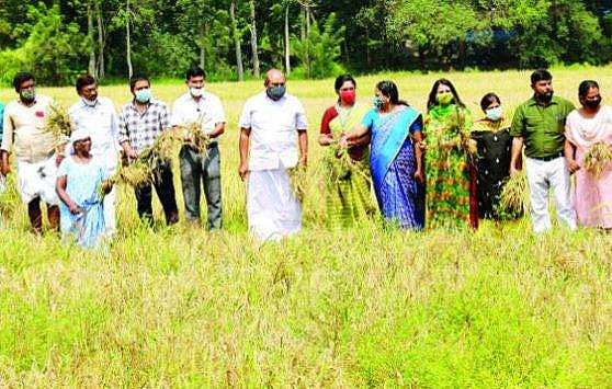 ത്തരമാറ്റ്‌ വിളഞ്ഞ പുന്നച്ചാൽ പാടത്തെ നെൽകറ്റകൾ വിളവെടുത്ത് വിനീത്‌ ശ്രീനിവാസൻ. പത്ത് വർഷം മുൻപ് അച്ഛൻ ശ്രീനിവാസൻ തുടക്കം കുറിച്ച ജൈവകൃഷിയുടെ കൊയ്ത്തുത്സവത്തിനാണ് നടനും ഗായകനും സംവിധായകനുമായ വിനീത്‌ എത്തിയത്.