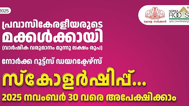 ബിരുദാനന്തര ബിരുദ കോഴ്സുകൾക്കും പ്രൊഫഷണൽ ഡിഗ്രി കോഴ്സുകൾക്കും 2025-26 അധ്യയന വർഷത്തിലെ ഒന്നാം വര്ഷ വിദ്യാർത്ഥികൾക്കാണ് സ്കോളര്ഷിപ്പിന് അര്ഹത. താല്പര്യമുളളവര് 2025 നവംബര് 30 നകം അപേക്ഷ നല്കേണ്ടതാണ്. സ്കോളര്ഷിപ്പ് പോര്ട്ടലായ www.scholarship.norkaroots.org സന്ദർശിച്ച് ഓണ്ലൈനായി മാത്രമേ അപേക്ഷ നല്കാനാകൂ.