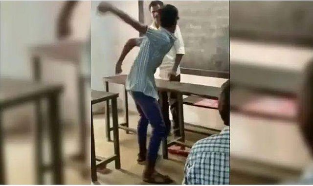 ബോട്ടണി അധ്യാപകനായ സഞ്ജയ് ഗാന്ധി പ്ലസ്ടു വിദ്യാര്ത്ഥികളോട് റെക്കോര്ഡ് ബുക്ക് സമര്പ്പിക്കാന് ആവശ്യപ്പെട്ടിരുന്നു. തുടര്ന്നാണ് വിദ്യാര്ഥികള് അധ്യാപകനെതിരെ രംഗത്തെത്തിയത്. മാരി എന്ന കുട്ടിയാണ് അധ്യാപകനോട് ആദ്യം മോശമായി പെരുമാറിയത്. ക്ലാസ് എടുക്കുന്നതിനിടെ ഈ കുട്ടി ഉറങ്ങിയത് അധ്യാപകന് ചോദ്യം ചെയ്തിരുന്നു. ഇതില് പ്രകോപിതനായ വിദ്യാര്ഥി അധ്യാപകനെ അസഭ്യം പറയുകയും, അക്രമിക്കാന് ശ്രമിക്കുകയും ചെയ്യുന്നു. ഇതിന് പിന്നാലെ മറ്റൊരു വിദ്യാര്ഥിയും അധ്യാപകനെ ആക്രമിക്കാന് എത്തുന്നത് വീഡിയോയില് കാണാം.