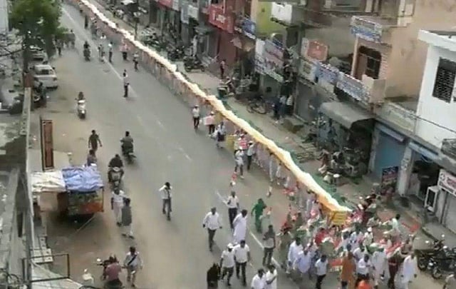 ഹരിയാനയില് 6,600 അടി നീളമുള്ള ത്രിവര്ണ പതാകയുമേന്തി റാലി നടത്തുകയാണ്. ഹരിയാനയിലൈ ജജ്ജറില് നടക്കുന്ന റാലിയുടെ ദൃശ്യങ്ങള് പുറത്തുവന്നു. നിരവധിപേരാണ് റാലിയില് പങ്കെടുക്കുന്നത്.
