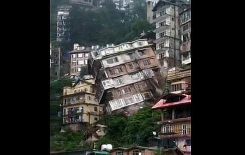 വ്യാഴാഴ്ച ഉച്ചയോടെ ഷിംലയിലാണ് സംഭവം. കനത്തമഴയാണ് ഹിമാചല് പ്രദേശില് അനുഭവപ്പെടുന്നത്. ഇതിനെ തുടര്ന്നുണ്ടായ മണ്ണിടിച്ചിലിലാണ് കെട്ടിടം തകര്ന്നുവീണത്. കെട്ടിടം തകര്ന്നുവീണത് മൂലം തൊട്ടരികിലുള്ള രണ്ടു കെട്ടിടങ്ങള്ക്ക് തകരാര് സംഭവിച്ചു. ഹോട്ടല് അടക്കമുള്ള രണ്ടു കെട്ടിടങ്ങള്ക്കാണ് കേടുപാടുകള് സംഭവിച്ചത്. കെട്ടിടം തകര്ന്നുവീഴുന്ന ദൃശ്യങ്ങള് വ്യാപകമായാണ് പ്രചരിക്കുന്നത്.