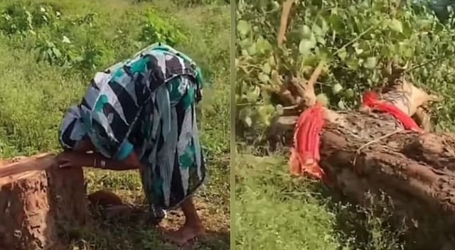 റായ്പൂര്: ഇരുപത് വര്ഷത്തിലേറെക്കാലം വീട്ടുമുറ്റത്ത് നട്ടുവളര്ത്തിയ ആല്മരം രാത്രിയില് ആരോ മുറിച്ച് മാറ്റിയതിന്റെ വേദനയില് പൊട്ടിക്കരഞ്ഞ് വയോധികയായ ദേവ്ല ഭായ്. ഛത്തീസ്ഗഡിലെ ഖൈരഗഡ് ജില്ലയിലാണ് സംഭവം. സ്വന്തം കുഞ്ഞിനെ പോലെയാണ് അവര് ആ ആല്മരത്തെ സംരക്ഷിച്ചതെന്ന് നാട്ടുകാര് പറയുന്നു.