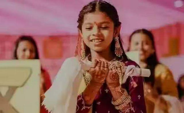 ജൈന സന്യാസി ആചാര്യ വിജയ് കൃത്യഷൂരിയില് നിന്നാണ് ദേവാന്ഷി ദീക്ഷ സ്വീകരിച്ചത്. സൂറത്തിലെ വേസുവില് നടന്ന ചടങ്ങില് നൂറുകണക്കിന് ആളുകളാണ് പങ്കെടുത്തത്.
