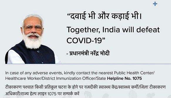 തെരഞ്ഞെടുപ്പ് നടക്കുന്നതിനാൽ മാതൃകാ പെരുമാറ്റച്ചട്ടം നിലനിന്ന സാഹചര്യത്തിലായിരുന്നു ഉത്തർ പ്രദേശ്, ഗോവ, ഉത്തരാഖണ്ഡ്, പഞ്ചാബ്, മണിപ്പുർ സംസ്ഥാനങ്ങളിൽ വിതരണം ചെയ്തിരുന്ന കോവിഡ് വാക്സിനേഷൻ സർട്ടിഫിക്കറ്റുകളിൽ നിന്ന് പ്രധാനമന്ത്രിയുടെ ചിത്രം ഒഴിവാക്കിയത്. തെരഞ്ഞെടുപ്പ് കഴിഞ്ഞ സാഹചര്യത്തിലാണ് കേന്ദ്രത്തിന്റെ നീക്കം.