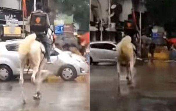 മുംബൈ: കനത്ത മഴയിലും കുതിരപ്പുറത്ത് ഭക്ഷണം ഡെലിവര് ചെയ്യാന് എത്തിയ സ്വിഗ്ഗി ഏജന്റിന്റെ വിഡിയോയാണ് സോഷ്യല് മീഡിയയില് വൈറലാകുന്നത്. വെള്ളം കെട്ടിക്കിടക്കുന്ന മുംബൈയിലെ റോഡിലൂടെ കുതിരപ്പുറത്ത് ഓര്ഡര് നല്കാന് പോകുന്ന യുവാവിന്റെ വിഡിയോയാണ് ഇത്. യുവാവിനെ അഭിനന്ദിച്ചുകൊണ്ട് നിരവധിപ്പേരാണ് കമന്റ് കുറിച്ചിരിക്കുന്നത്.