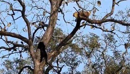 മരത്തിന് മുകളിൽ കരിമ്പുലിയും പുള്ളിപ്പുലിയും നേർക്കുനേർ നിൽക്കുന്ന ദൃശ്യങ്ങൾ വൈറലാകുന്നു. പരസ്പരം ഏറ്റുമുട്ടാൻ നിൽക്കുന്നത് പോലെയുള്ള പ്രതീതി ജനിപ്പിക്കുന്നതാണ് വീഡിയോ.