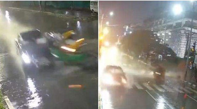 കനത്ത മഴയില്‍ കുതിച്ചുപാഞ്ഞ് ഓട്ടോറിക്ഷയെ ഇടിച്ചുതെറിപ്പിച്ച് ഓഡി കാര്‍ ; പമ്പരം പോലെ കറങ്ങി ഓട്ടോ ( വീഡിയോ)