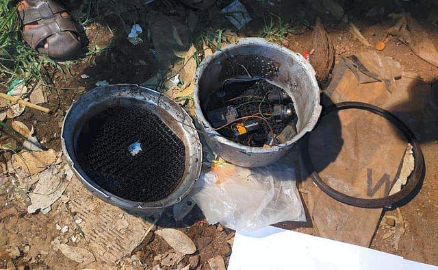 ഓട്ടോയിൽ നിന്ന് കണ്ടെത്തിയ കത്തിക്കരിഞ്ഞ പ്രഷർ കുക്കറും ബാറ്ററികളും/ പിടിഐ