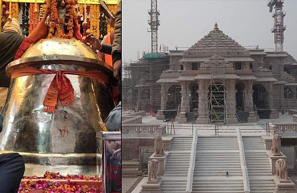 ഉത്തര്പ്രദേശിലെ ജലേസറില് നിര്മ്മിച്ച അമ്പലമണി ഇന്നലെ ട്രെയിന് മാര്ഗമാണ് അയോധ്യയിലെത്തിച്ചത്. അതിനുശേഷം വിവിധ ഇടങ്ങളില് പ്രദര്ശിപ്പിക്കുകയും ചെയ്തു.