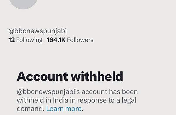 ന്യൂഡല്ഹി: ബിബിസി പഞ്ചാബിയുടെ ട്വിറ്റര് അക്കൗണ്ടിന് വിലക്ക് ഏര്പ്പെടുത്തി ഇന്ത്യ. അമൃത് പാല് സിങ്, സിഖ് പ്രതിഷേധ വാര്ത്തകളുമായി ബന്ധപ്പെട്ടാണ് നടപടി.