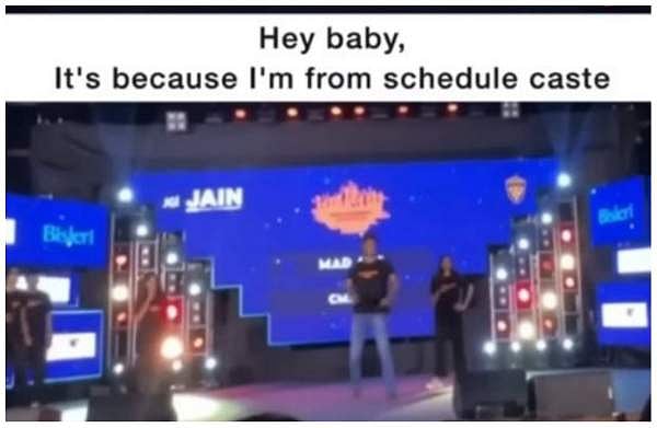 കോളജ് ഓഫ് മാനേജ്മെൻറ് സ്റ്റഡീസ് (സിഎംഎസ്) വിദ്യാർത്ഥികളാണ് വിവാദ സ്കിറ്റ് അവതരിപ്പിച്ചത്. ഒരു ദളിത് യുവാവ് സവർണ യുവതിയോട് പ്രണയാഭ്യർത്ഥന നടത്തുന്നതാണ് സ്കിറ്റിന്റെ പ്രമേയം. കോളജ് ഫെസ്റ്റിനിടെ 'മാഡ് ആഡ്സ്' എന്ന സെഗ്മെൻറിലാണ് സ്കിറ്റ് അവതരിപ്പിച്ചത്. യുവാവ് ഡേറ്റിംഗിന് വന്നപ്പോൾ പോലും ഒരേ പ്ലേറ്റിൽ നിന്ന് ഭക്ഷണം കഴിക്കാൻ യുവതി സമ്മതിച്ചില്ലെന്നും സ്കിറ്റിൽ പരാമർശിക്കുന്നുണ്ട്.