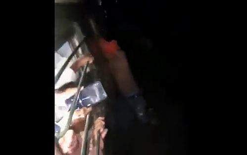അതിവേഗത്തില് പായുന്ന തീവണ്ടിയുടെ വാതിലില് തൂങ്ങിക്കിടന്ന് ജീവനുവേണ്ടി നിലവിളിക്കുന്നത് കാണാം. ട്രെയിനില് തന്നെയുള്ള മറ്റുയാത്രക്കാരാണ് ദൃശ്യങ്ങള് മൊബൈലില് പകര്ത്തിയത്. ട്രെയിനില് വച്ച് മൊബൈല് ഫോണ് മോഷ്ടിക്കന് ശ്രമിച്ചെന്നാരോപിച്ചാണ് ഇയാളെ യാത്രക്കാര് പിടികൂടിയത്. ഇയാള്ക്കൊപ്പമുള്ള മറ്റുള്ളവര് രക്ഷപ്പെടുകയും ചെയ്തു
