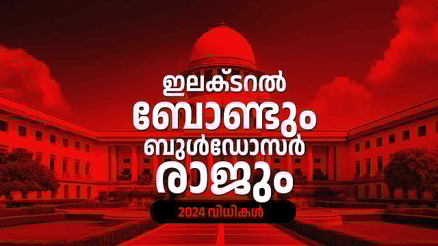 ആയിരത്തിന് മുകളില് വിധിന്യായങ്ങള് പുറപ്പെടുവിച്ച 2024 സുപ്രീംകോടതിയേയും ഇന്ത്യന് ജുഡീഷ്യറിയേയും സംബന്ധിച്ച് നിര്ണായകമായിരുന്നു. പലതും രാജ്യത്തെ രാഷ്ട്രീയ, സാമ്പത്തിക, സാമൂഹിക വിഷയങ്ങളായിരുന്നു. ഇടതടവില്ലാതെ വിധിന്യായങ്ങളില് തീര്പ്പ് കല്പ്പിക്കുകയും സുപ്രധാന വിധികള് പറയുകയും ചെയ്ത ചീഫ് ജസ്റ്റിസ് ഡി വൈ ചന്ദ്രചൂഡിന്റെ പടിയിറക്കത്തിനും പോയ വര്ഷം സാക്ഷിയായി. ചില സുപ്രധാന വിധികള് ഏതെന്ന് നോക്കാം...