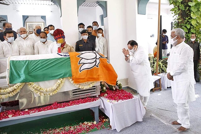 ന്യൂഡൽഹി: അന്തരിച്ച ഉത്തർപ്രദേശ് മുൻ മുഖ്യമന്ത്രി കല്യാൺ സിങ്ങിന്റെ മൃതദേഹത്തിന് മുകളിൽ ദേശീയ പതാകയ്ക്ക് മീതെ ബിജെപി പതാക വിരിച്ചത് വിവാദത്തിൽ. ബിജെപി അധ്യക്ഷൻ ജെ പി നഡ്ഡ ആദരാഞ്ജലി അർപ്പിക്കുന്നതിന്റെ ചിത്രമാണ് പ്രചരിക്കുന്നത്. ദേശീയ പതാകയെ അപമാനിച്ചെന്ന് ചൂണ്ടിക്കാട്ടി പ്രതിപക്ഷം രൂക്ഷവിമർശനവുമായി രംഗത്തെത്തി.