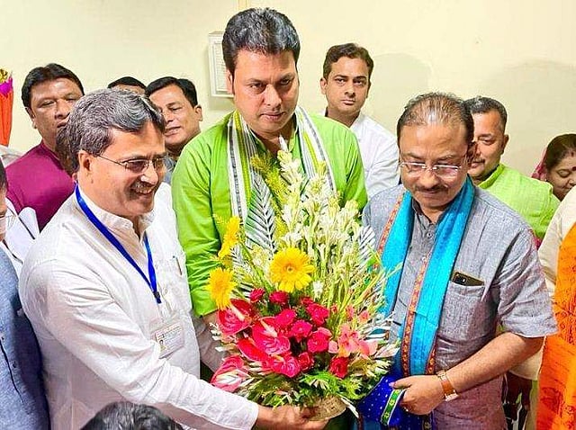 60 അം​ഗ നിയമസഭയിൽ ബിജെപിക്ക് 36 സീറ്റുകളാണുള്ളത്. ബിജെപി സഖ്യകക്ഷിയായ ഇൻഡിജിനിയസ് പീപ്പിൾസ് ഫ്രണ്ട് ഓഫ് ത്രിപുരയ്ക്ക് (ഐപിഎഫ്ടി) ഏഴ് അം​ഗങ്ങളാണുള്ളത്. സിപിഎമ്മിന് സഭ‌യിൽ 15 അം​ഗങ്ങളുണ്ട്. കോൺ​ഗ്രസിന് ഒരം​ഗം മാത്രമേ ഉള്ളു. കോൺ​ഗ്രസ് അം​​ഗം വോട്ട് രേഖപ്പെടുത്തിയില്ലെന്നാണ് റിപ്പോർട്ട്.