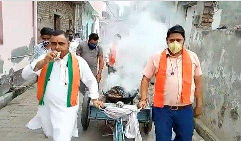 ലക്നൗ: കോവിഡ് വ്യാപനം അതിരൂക്ഷമായി തുടരുന്നതിനിടെ, വൈറസിനെ തുരത്താന് അശാസ്ത്രീയമായ മാര്ഗങ്ങള് അവലംബിക്കുന്നതിന്റെ നിരവധി സംഭവങ്ങള് പുറത്തുവന്നിട്ടുണ്ട്. കഴിഞ്ഞ ദിവസം കോവിഡിനെ ചെറുക്കാന് ബിജെപി നേതാവ് യാഗം നടത്തുന്നതിന്റെ വീഡിയോ പുറത്തുവന്നിരുന്നു. ഇപ്പോള് സമാനമായ മറ്റൊരു സംഭവമാണ് വാര്ത്തകളില് നിറയുന്നത്.