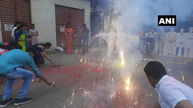 അതിനിടെ മഹാരാഷ്ട്രയിലെ ബിജെപി പ്രവര്ത്തകര് കൊറോണ വൈറസിന്റെ കോലം കത്തിച്ചും ആഘോഷം കൊഴുപ്പിച്ചു. മുംബൈയിലെ ഘട്കോപര് പ്രദേശത്താണ് പ്രവര്ത്തകര് പടക്കം പൊട്ടിച്ചതിനൊപ്പം കൊറോണ വൈറസിന്റെ കോലവും കത്തിച്ചത്.