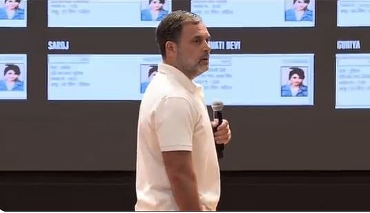 5,21,619 ഡൂപ്ലിക്കേറ്റ് വോട്ടര്മാരുണ്ടായി. 93,174 വ്യാജ വിലാസങ്ങളുണ്ടായെന്നും രാഹുല് ആരോപിച്ചു. ഇത് വീണ്ടും പരിശോധിക്കുന്നതില് നിന്ന് തെരഞ്ഞെടുപ്പ് കമ്മിഷന് തടഞ്ഞിരിക്കുകയാണ്. ഒരു വോട്ടര് ഐഡിയില് ഒരാള്ക്ക് ഒരു മണ്ഡലത്തില് മാത്രം നൂറ് വോട്ടുകളാണുള്ളത്. ഒരേ ഫോട്ടോ ഉപയോഗിച്ച് രണ്ട് പോളിങ് ബൂത്തില് മാത്രം 223 വോട്ടുകള് പട്ടികയില് ഉള്പ്പെട്ടിട്ടുണ്ടെന്നും രാഹുല് ചൂണ്ടിക്കാട്ടി.